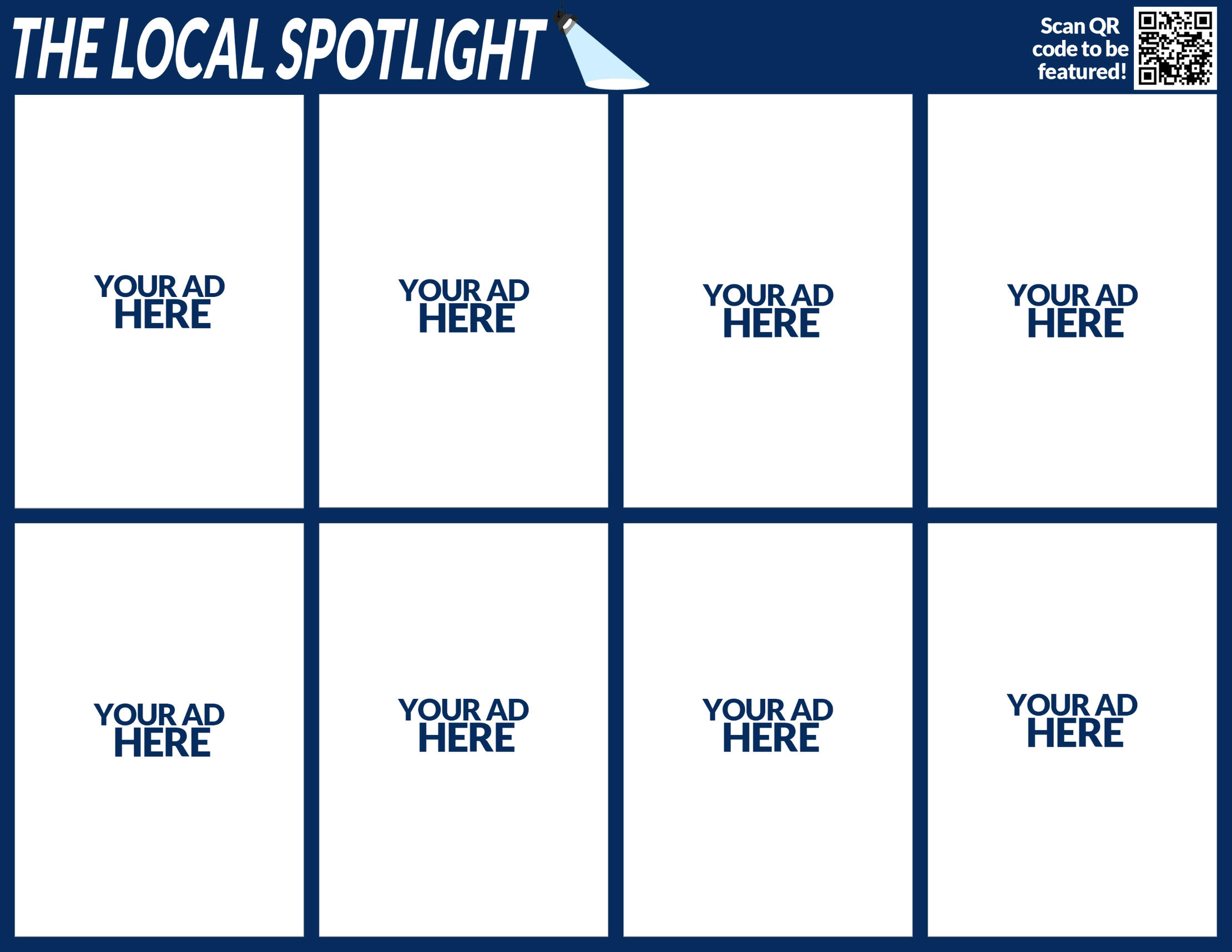 Let’s get you in the spotlight!Your ad could be reaching 10,000 residents—don’t miss this opportunity to connect with your local audience! Whether you're looking for a premium ad space, customized standard ad, or a budget-friendly option, we have the perfect placement for your business.Spaces are limited! Secure your spot today and shine in the spotlight!